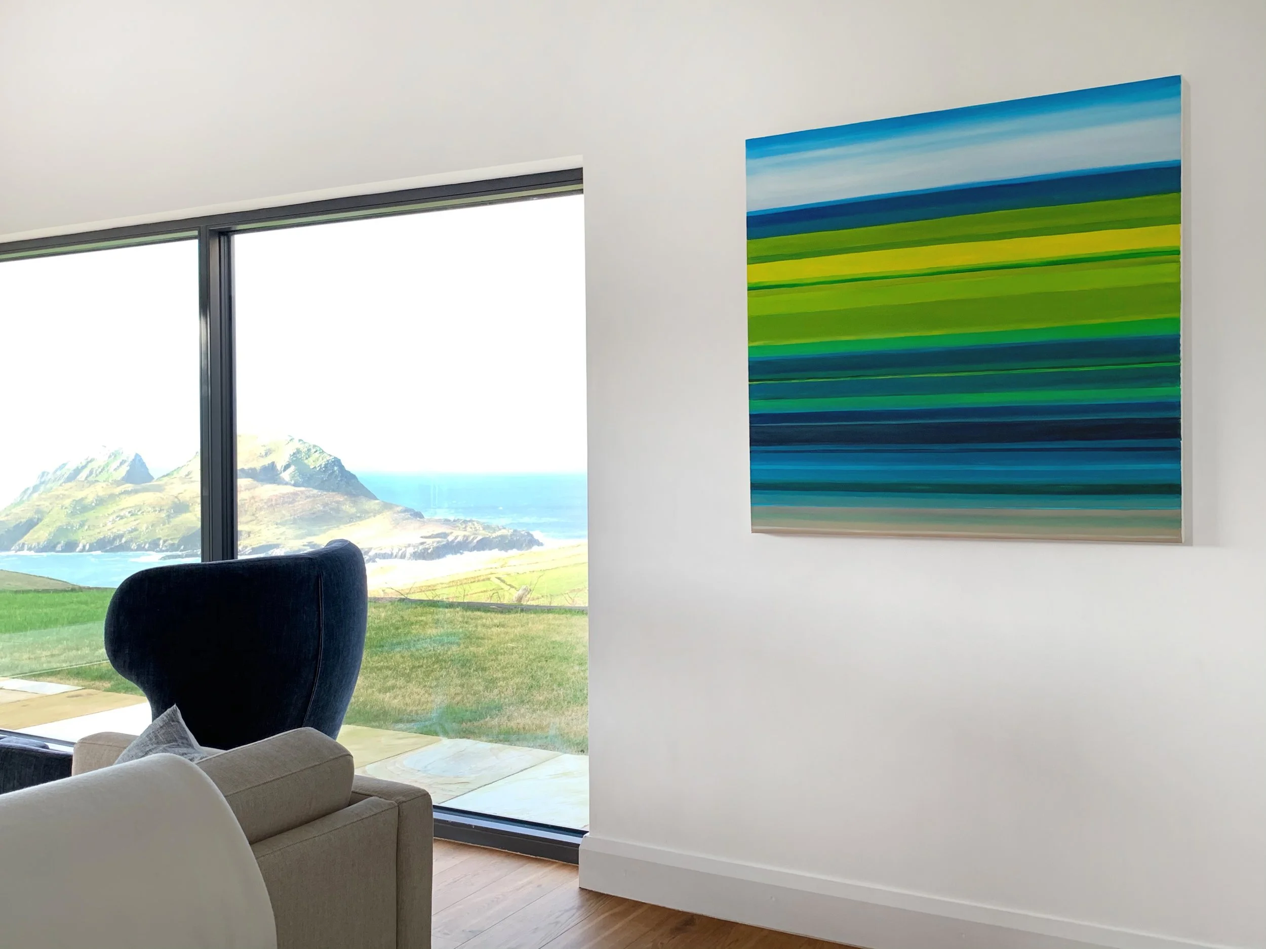 Together, we help you find the right artwork and format for your wall. By placing selected works into images of your own interior, you can see how each piece interacts with the space – its presence, balance and mood – rather than viewing it against a generic backdrop.