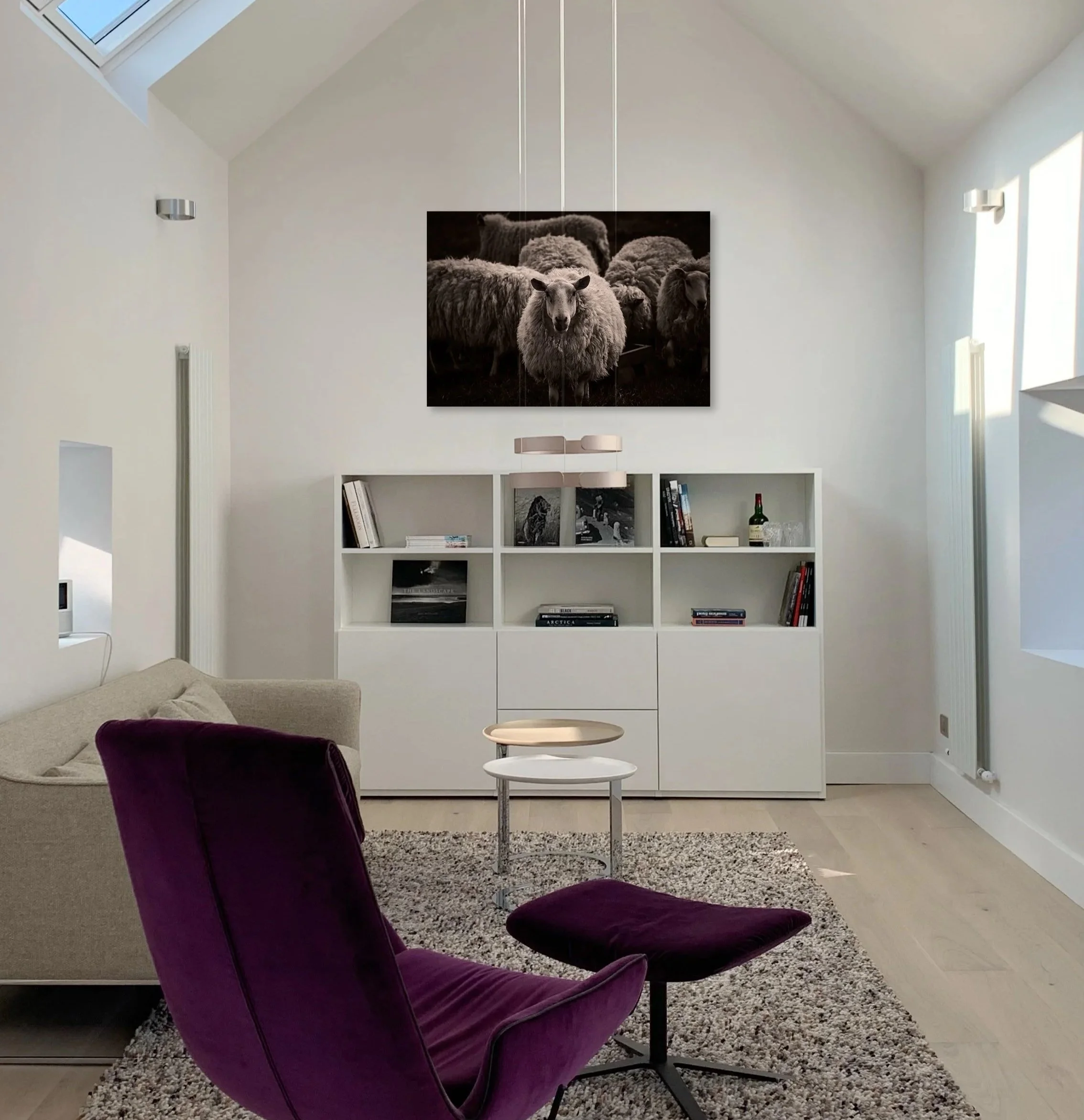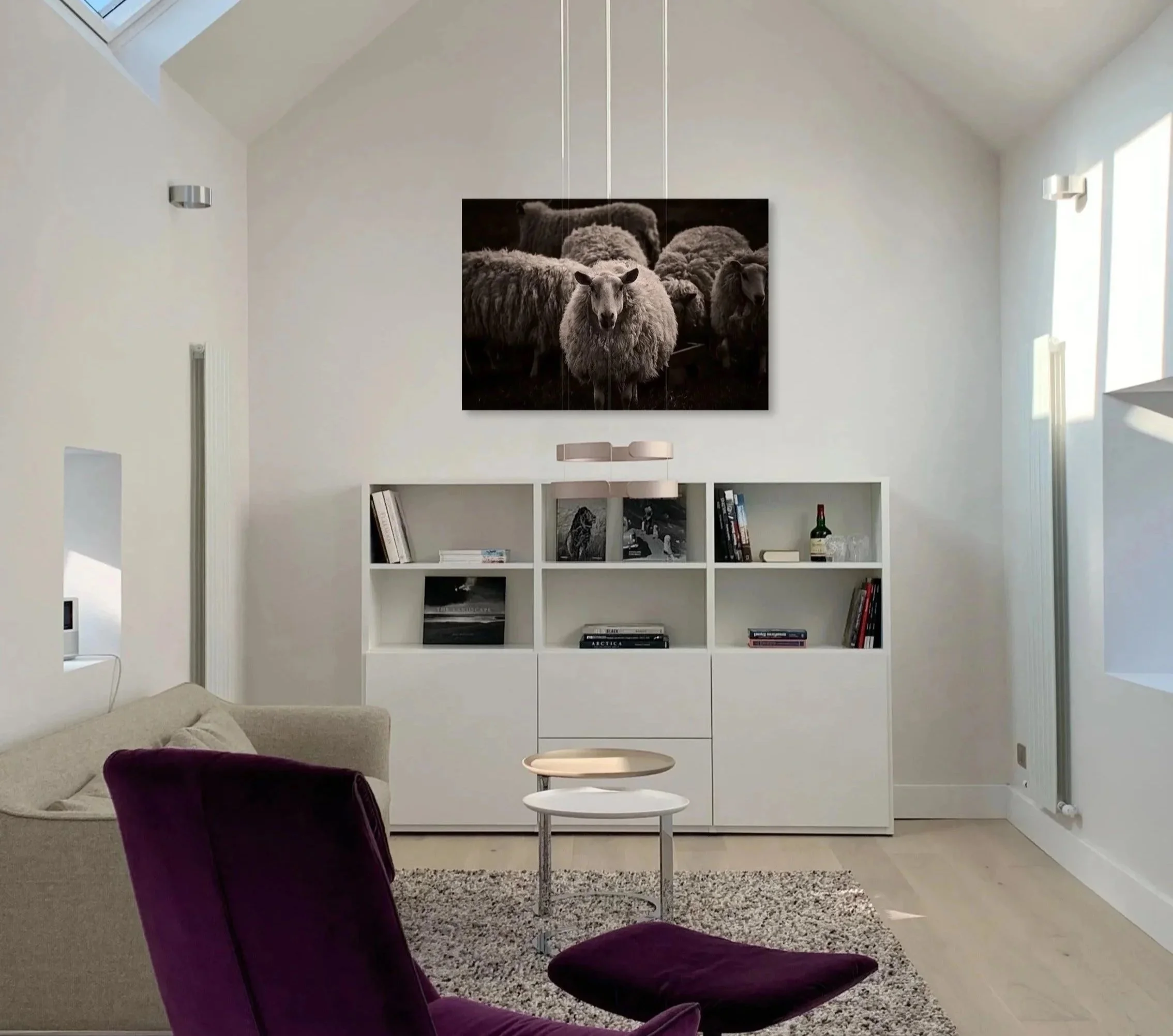 Together, we help you find the right photography, format and finish for your wall. By placing selected works into images of your own interior, you can see how each piece interacts with the space – its presence, balance and mood – rather than viewing it against a generic backdrop.